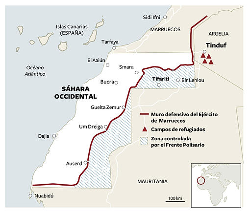 El 2 de marzo de 1956 Marruecos celebró su independencia de España y de Francia, abandonando este último la nueva nación el 7 de abril de ese mismo año. Tras la entrada de Marruecos a la Organización de las Naciones Unidas (ONU) en 1956, reclamó el Sahara Occidental como parte de su soberanía. Mauritania de igual manera empezó a reclamar el territorio, por ello la ONU sugirió la descolonización del Sahara. En 1975, España atendió a la sugerencia de la ONU cediendo conforme a lo dispuesto en los Acuerdos de Madrid, la administración, pero no la soberanía del Sahara Occidental a Mauritania y a Marruecos, siendo así que en la actualidad es legalmente territorio español.